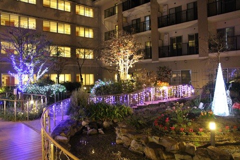 12月17日、ローズライフ高の原では現在中庭に『クリスマスイルミネーション』を実施しております