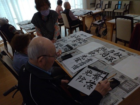 12月10日、ユトリーム朝霧では『習字教室』を行いました。