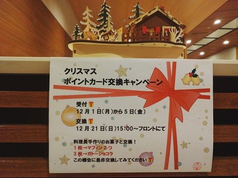 ご入居者さまが、ラジオ体操、リハビリ体操、映画鑑賞などで貯められたポイントで料理長による、手作りのXmasお菓子と交換させていただきました。