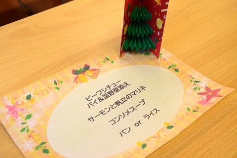 「今日は豪華やね」「クリスマスやからやねぇ」と、笑顔で楽しまれていました。