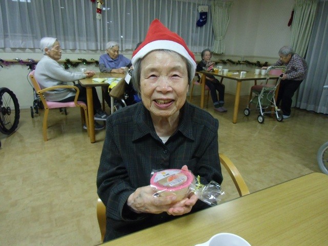 そりに乗った(台車を引いた? 笑)にっこり笑顔のサンタさん ご入居者さまに笑顔をお届けし、帰って行かれました。サンタさんありがとうございました。来年もまたプレゼントいっぱい持って来て下さいね~❤