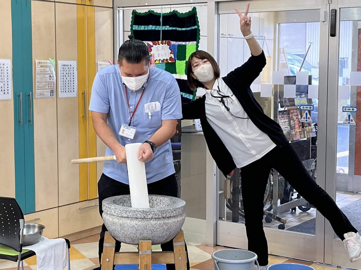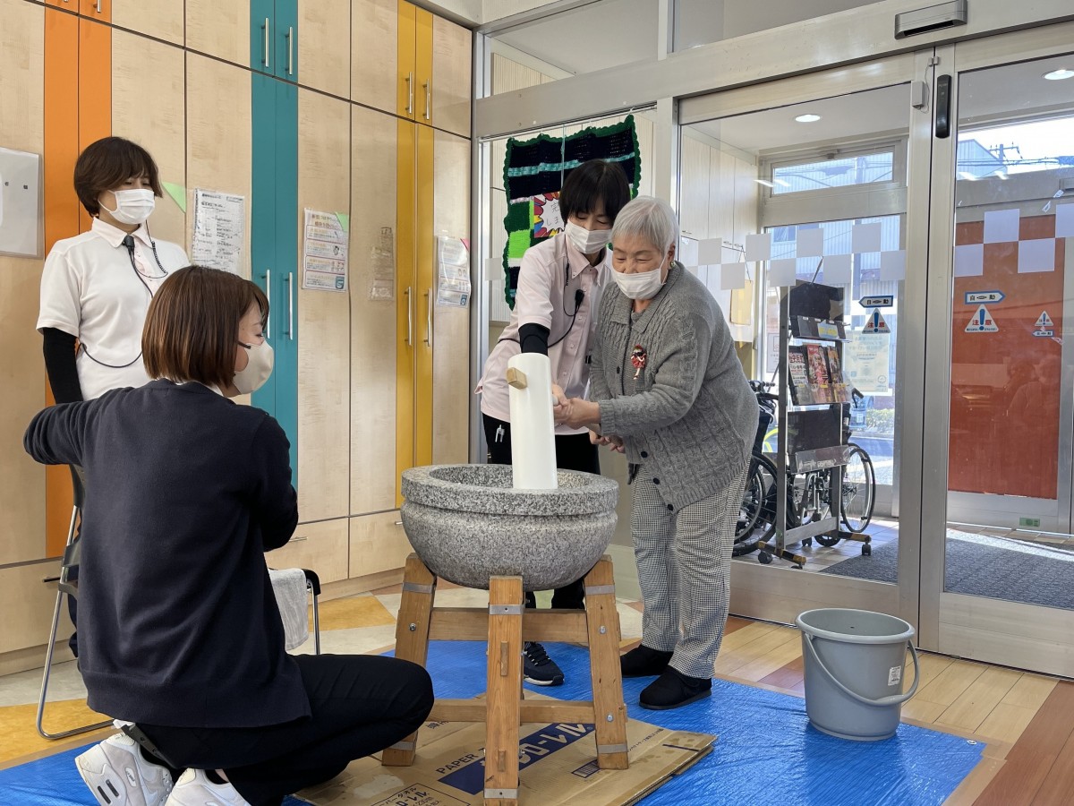 12月26日、デイサービスセンターナービス寝屋川では年内最後の大イベントとなる『餅つき大会』を開催しました。