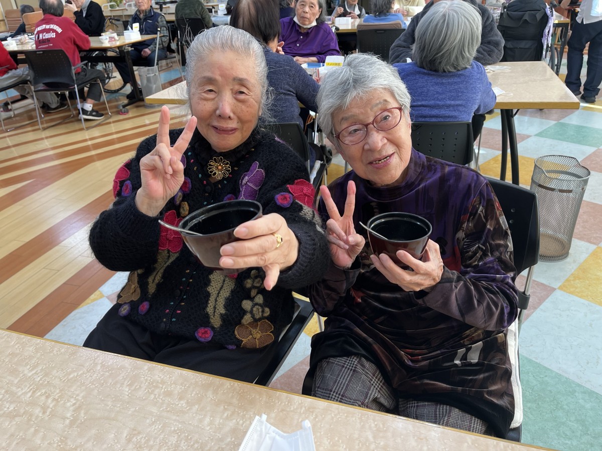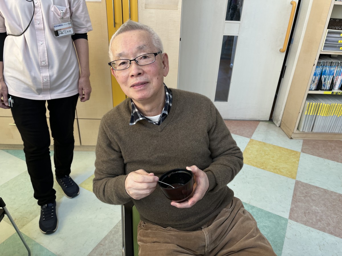 餅つき終了後は、皆さまでお汁粉を召し上がっていただき、「美味しいね」「体が温まるね」と笑顔で喜ばれていました。