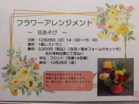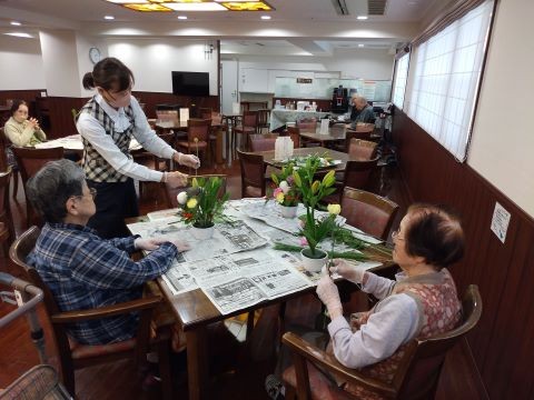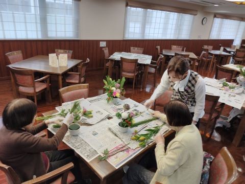 施設ブログ トップページ 施設ブログ (帝塚山)フラワーアレンジメント 正月花 ベルパージュ大阪帝塚山 2025.12.28 (帝塚山)フラワーアレンジメント 正月花 12月28日、ベルパージュ大阪帝塚山では『フラワーアレンジメント』を行いました。 もう幾つ寝るとお正月… ということで、今回のアレンジメントの花材は 『正月花』です 松、千両、ピンポン菊 LAユリ 葉ボタン、カーネーション ラナンキュラス、クラスペディアの8種類 松と千両と葉ボタンで一気にお正月らしくなります。 個性あふれる作品が並びました。 どうぞ良いお年をお迎え下さいませ。 【ベルパージュ大阪帝塚山】 〒558-0055 大阪市住吉区万代3-6-23 TEL 0120-619-329 FAX 06-7506-9525 ご入居相談お待ちしております♪ 一緒に働く仲間を募集中です♪ この記事で紹介されている施設の詳細はこちら 記事一覧に戻る