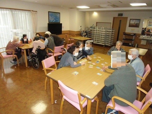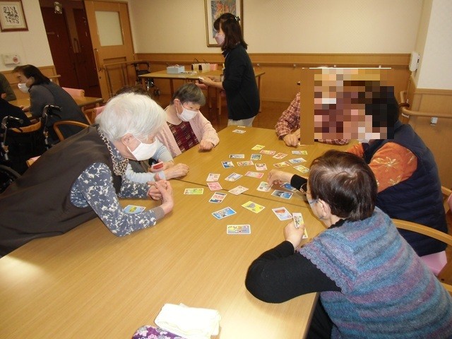 1月3日、ナービス藤井寺恵美坂では 紅白に分かれて、『新春かるたとり』をしました。