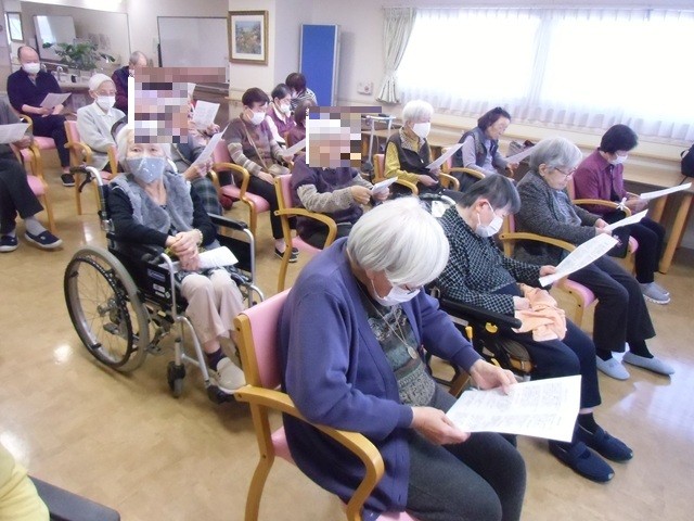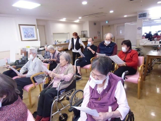 1月7日、ナービス藤井寺恵美坂では 新年初めての『唄ってバンド』をお招きしました。1月のお誕生のご入居者さまを歌でお祝いすることから始まりました。今月の楽曲♪焚き火・この世の花・港が見える丘・高校三年生・好きになった人・君といつまでも・津軽海峡冬景色・祝い酒♪8曲でリクエスト曲は高校三年生と津軽海峡冬景色でした。