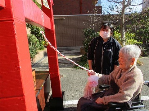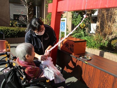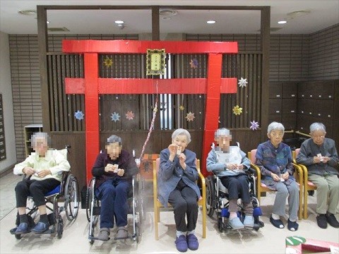 1月1日、ユトリーム大阪北では、ホーム玄関前の駐車場にて『ユト北神社へ初詣』を行いました!