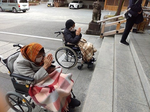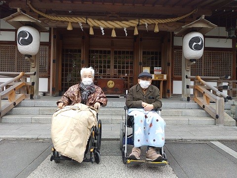 1月20日、ベルパージュ千里古江台では、ご入居者さまと吹田市山田にある『伊射奈岐神社』に初詣に行きました♪