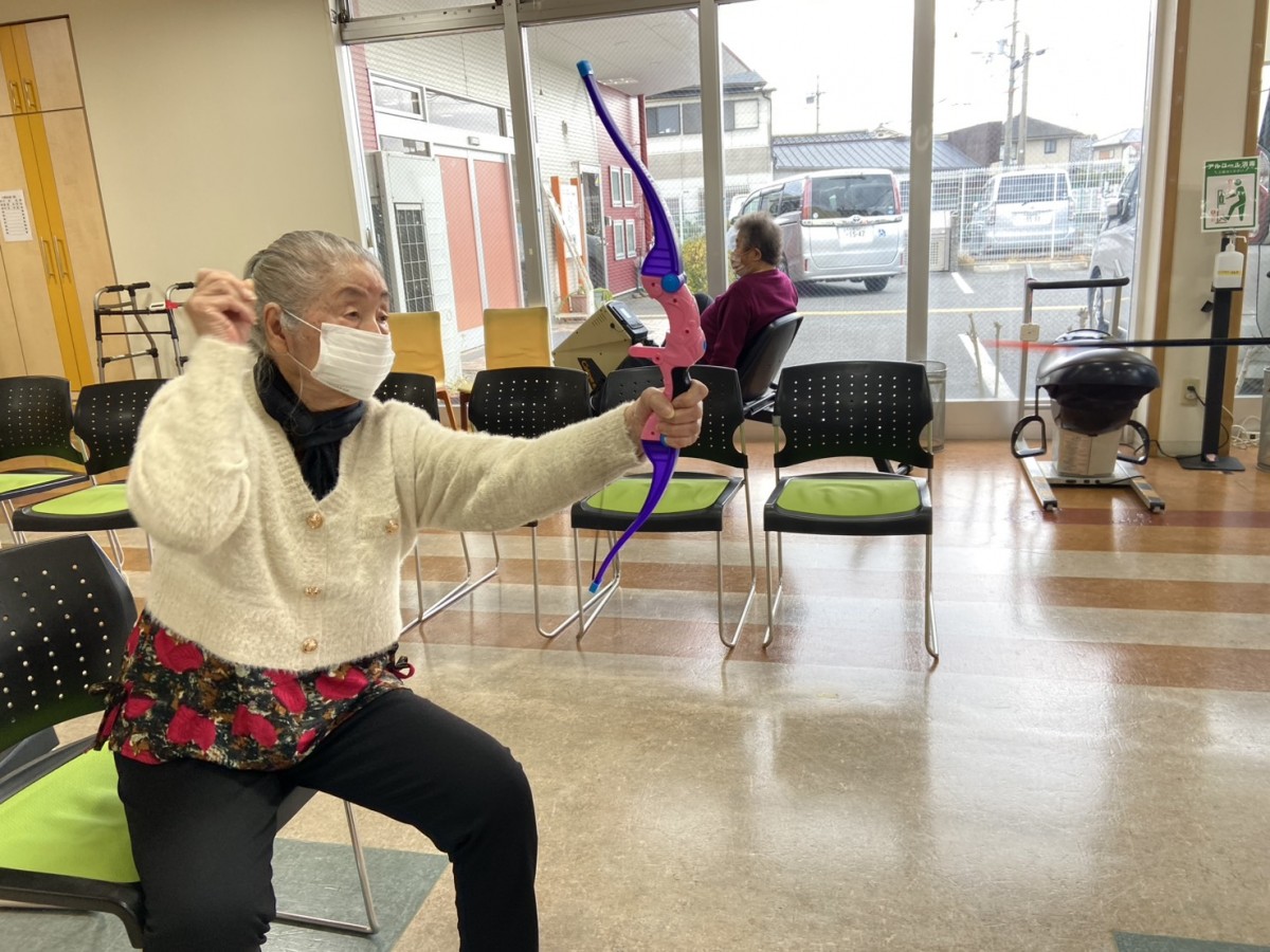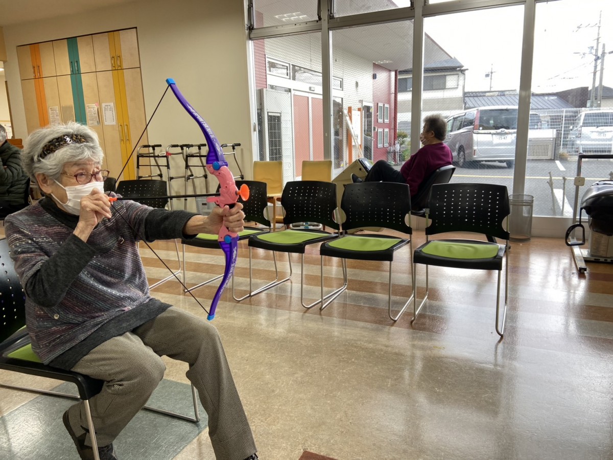1月26日、デイサービスセンターナービス寝屋川でご利用者さまに大人気の運動レクリエーションである『アーチェリー』を開催しました。