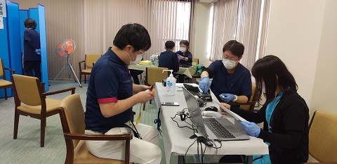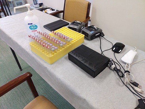 今回ご入居者さまは血液検査、問診。スタッフは血液検査、心電図、視力、聴力、身長体重等を検査いたしました。