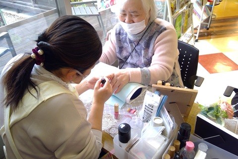 1月20日、デイサービスセンターナービス堂山公園では恒例の『ケア美容』を開催しました!色とりどりのマニキュアを前に皆さま自然と笑顔に♪