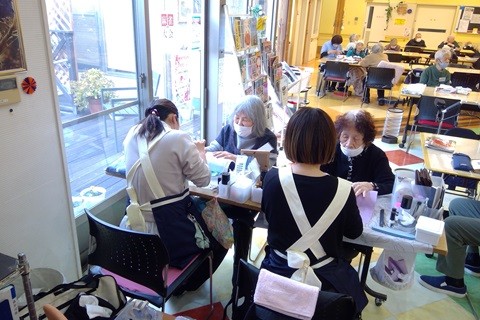 「爪をきれいにするのは久しぶり」「何色にしようか迷うね」など、始まる前から皆さまワクワクしたご様子でした。お一人おひとりに好きな色を選んでいただき、スタッフとお話ししながらゆっくりとネイルを楽しんでいただきました。ネイルは見た目の楽しさだけでなく、気分転換や意欲向上にもつながる素敵な時間です。