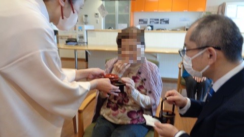 いつもと違う雰囲気に「今日は特別やね」「お正月らしくてええね」と、ご入居者さまから笑顔や驚きの声が聞かれました。