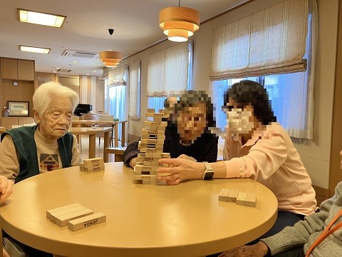 1月30日、ベルパージュ千里古江台ではご入居者さまの皆さまと『ジェンガ』で遊びました。