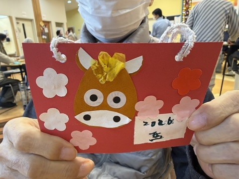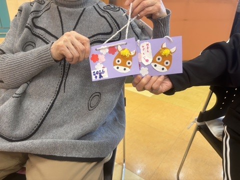 男性のご利用者さまも、積極的に取り組んでくれました♪ それぞれの個性が出て、とても素敵な絵馬ができました♪