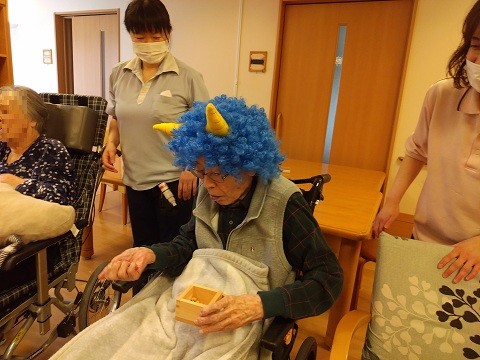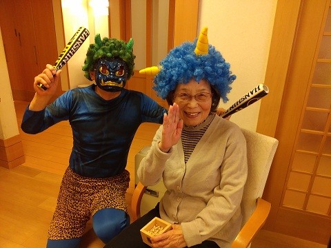 2月3日、ベルパージュ千里古江台では、今年の無病息災を願い、ご入居者さまと『豆まき』をしました。
