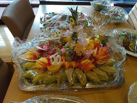 翌日午後からは皆さまと、ダイニングにて料理長手づくりのケーキを囲んでお祝いしました。
