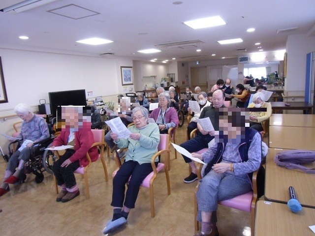 2月4日、ナービス藤井寺恵美坂では 今月もお誕生日の方をお祝いし、『唄ってバンド』の始まりです。今月のお誕生日で同じ日の方が4名おられました。今月の楽曲♪冬の夜・牧場の朝・からたち日記・東京の人・長崎の女・函館の人・あの丘越えて・大阪恋しずくの8曲でした。リクエスト曲は函館の人とあの丘越えてでした。
