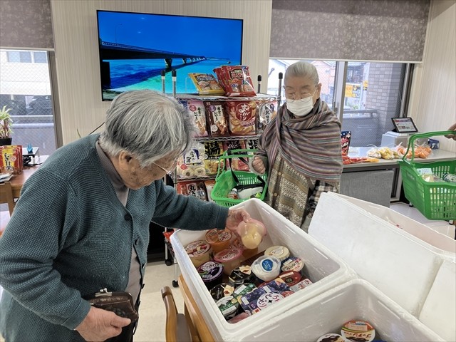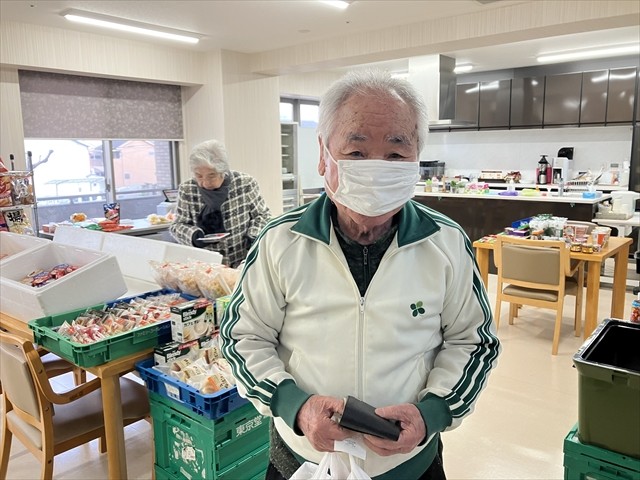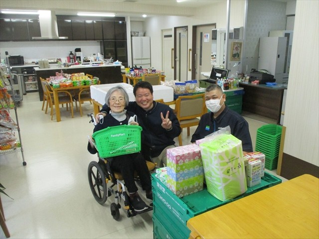 ご参加いただけましたご入居者さまより、「ファミマが来てくれるって聞いて楽しみやってん!商品もそのまんまでここにお店があるみたい♪」「これだけ寒いと外に行くのも気が引けるし・・・、でも建物の中で訪問販売があって嬉しいです♪」「食べ物がいっぱいあるから嬉しいわ~♪今日はちょっとお腹が空いたときのお菓子を買いに来てん♪」等々、喜びのお声をいただきました。沢山のご入居者さま、ご家族さまにご来場いただき、最後まで大盛況でした!楽しいひとときとなりました♪