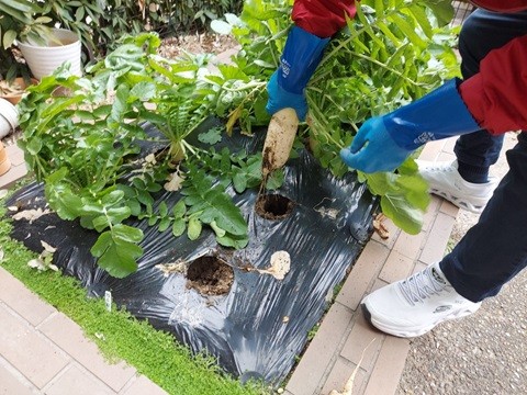 2月13日、ローズライフ京都の中庭にある畑で、愛情を込めて育てた『大根の収穫』を行いましたのでご報告いたします。