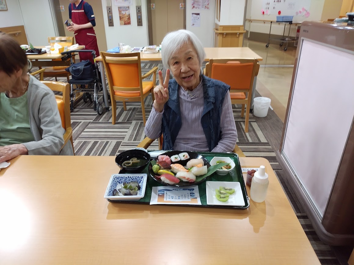 「わざわざお寿司を食べに行かなくても、ここで美味しいお寿司を握ってくれるから、ありがたいわ!」 そんな嬉しいお言葉も、ご入居者さまからいただきました♪