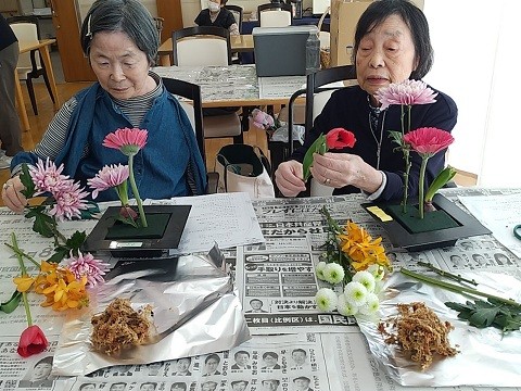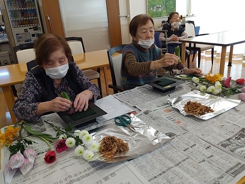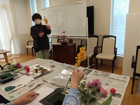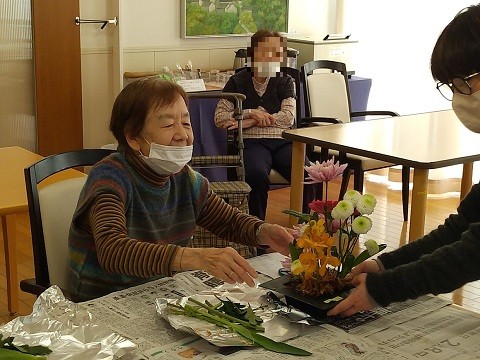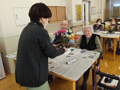 2月9日、ユトリーム朝霧では『フラワーアレンジメント』を行いました。