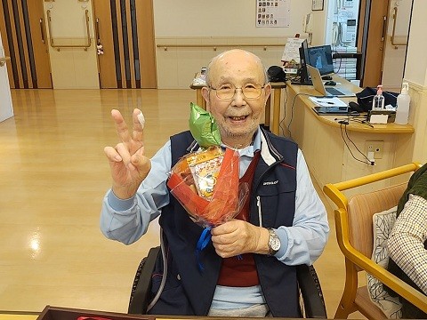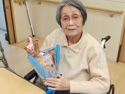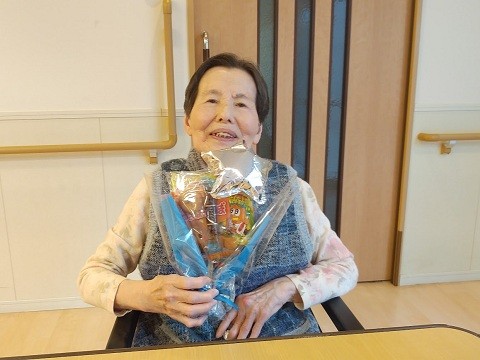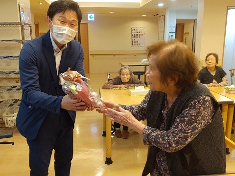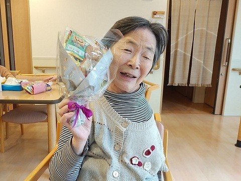 ご家族さまがこられた時に花束を渡したり、いつも施術して下さるリハビリの先生やスタッフにプレゼントをして下さるご入居者さまもおられました。