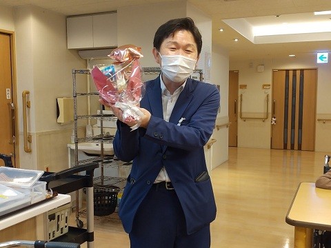 代表のご入居者さまが支配人に手渡すと思わぬサプライズに驚きながらもとても喜んでおられました。