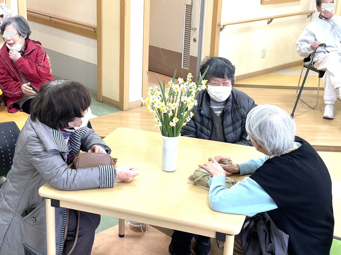 お茶を飲みながらのんびりおしゃべりしたり、昔の思い出話に花を咲かせたり。時には冗談を言い合って『大笑い』することも!