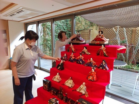 2月18日、ベルパージュ千里古江台では、ご入居者さまと一緒に七段の『お雛様』を飾りました。