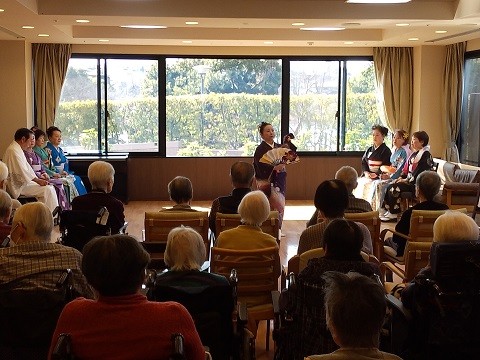 2月22日、ベルパージュ奈良あやめ池ケアレジデンスでは、ボランティアの方に『日本舞踊』を披露していただきました。 しなやかな所作と美しい衣装、そして日本の伝統を感じる舞と音楽に、入居者の皆さまも思わず見入っておられました。