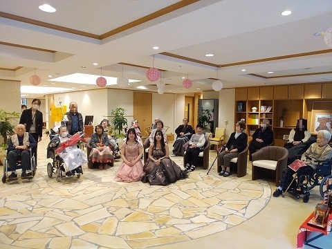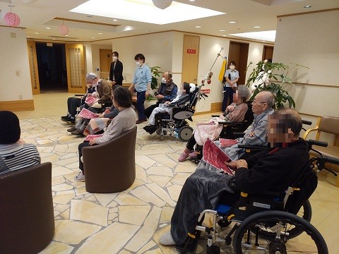 当日お誕生日のご入居者さまがおられたので、サプライズで『ハッピーバースデー』を弾いていただきました。