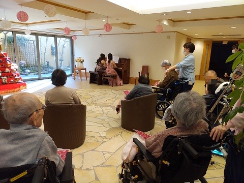 (ベルパージュ千里古江台)2月 迫力あるピアノ連弾~バレンタインコンサート~