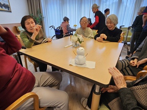 おやつを召し上がられ談笑されてい時にスタッフが作成した雪だるまに触れていただきました。