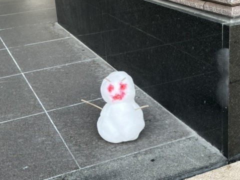 「いやぁぁ~。雪だるま?!本物??」「冷たいわ。本物ね。」「眉毛が怒ってるみたいよ。」
