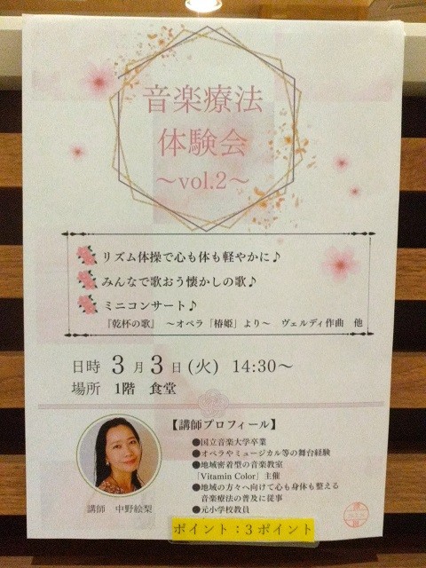 3月3日、ベルパージュ奈良あやめ池シニアレジデンスではひな祭りにちなんだ『音楽療法』を行いました。