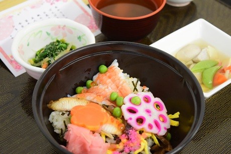 昼食には、ひな祭りにちなんだちらし寿司が提供されました。