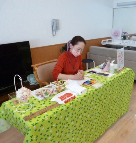 3月1日のcafeに合わせて、『花文字作家:中村美鈴』さんがお越しくださり、花文字の実演をしてくださいました。
