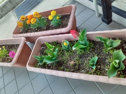 プランターにお花を植えました!!玄関先がとても賑やかになりましたよ♪