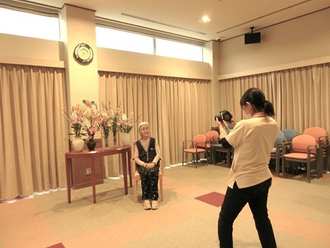 皆さまに『行ってみたい場所』や『お好きな風景』を事前に選んでいただきました。仕上がった写真をお渡しすると「本当に行ったみたい」「どなたが作ってくれたの」「ありがとう」と皆さま喜ばれていました。その風景の中に写っていることを嬉しそうに、少し不思議そうに眼を細めてご覧になっておられました。