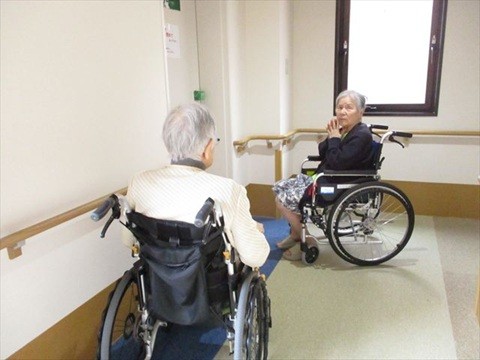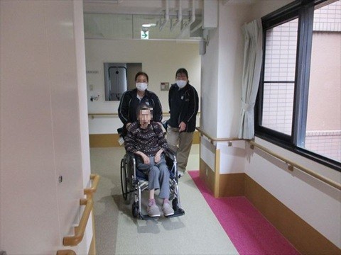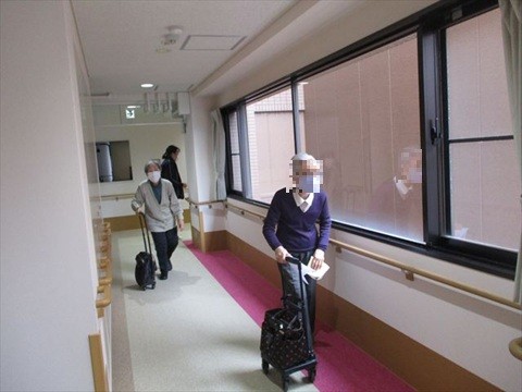 館内放送にて「訓練。訓練。1階スタッフルームより出火しています。各階非常階段前まで避難して下さい」と避難を呼びかけます。皆さま、スタッフ誘導のもと、手やハンカチを口へあてていただき、お部屋から各階の非常階段まで避難を行っていただきました。