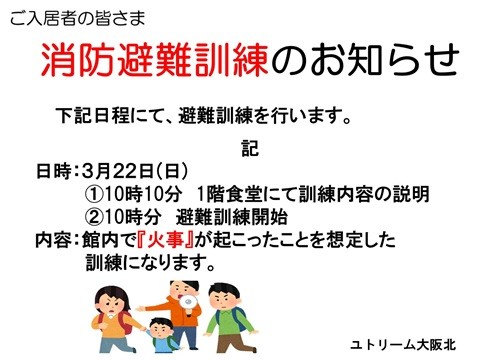 3月22日、ユトリーム大阪北では『消防避難訓練』を実施いたしました。