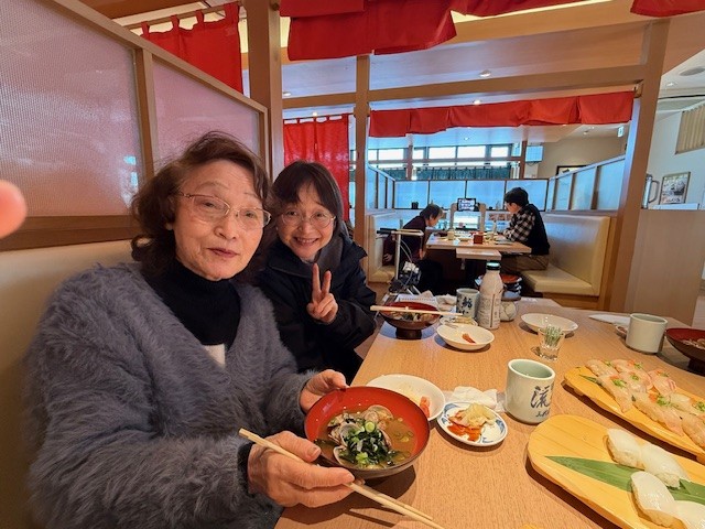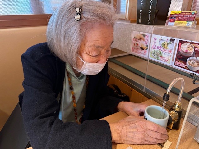 「お茶をこうやって入れるのね!」、タッチパネルを見て「お寿司の注文はこれを押すの?」と驚くことばかりのご様子でした。