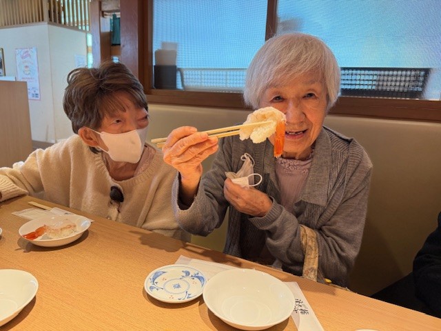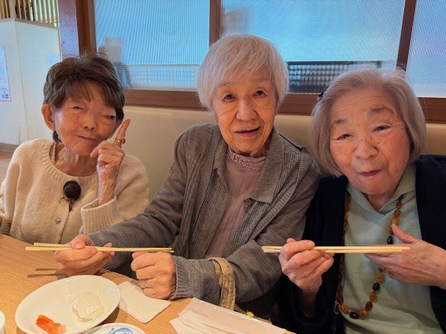 「あ〜おいしかったし、楽しかった♪」と満足そうにお話しされ、すっかりお腹も心も満たされたようでした。 お年を召されても『初めての経験による驚きと発見を楽しむことができる』その瞬間に立ち会えて、私たちスタッフも心温かな気持ちになりました。