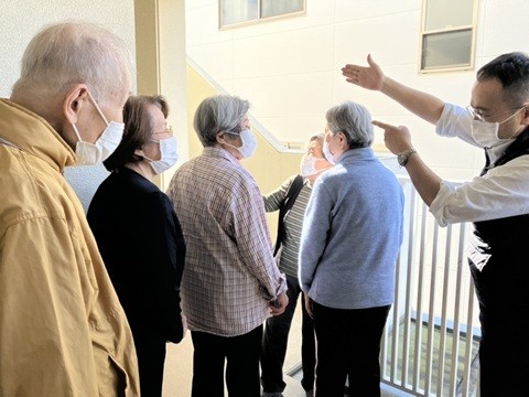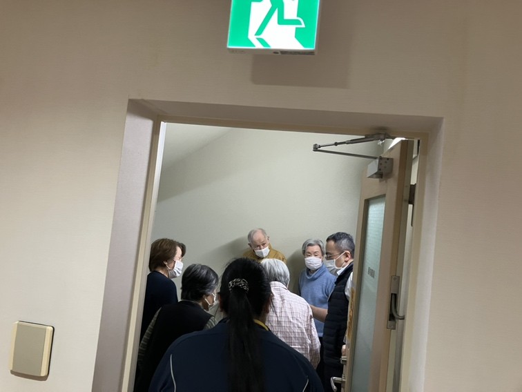 普段、非常階段を目にされることがないので、「こんな風になっているんですね」「あっ、ここに出てくるんですね」と館内の構造についても知っていただく良い機会になりました。また万一の有事の際の備えについても説明させていただきました。