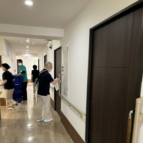 各居室を一部屋づつ回りながらの避難声掛けを順を追って行いました。