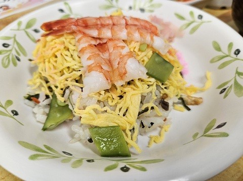 「ちらし寿司だ!お雛様やね~。」「綺麗に作ってくれてありがとう。」