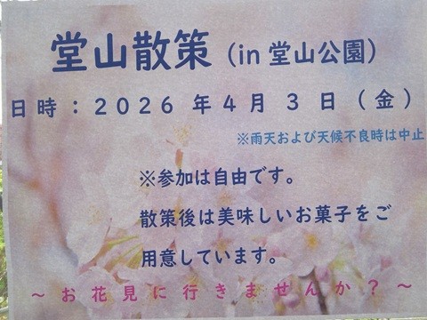 4月3日には、『堂山散策』として、近所の堂山公園へお花見に出かける予定です。