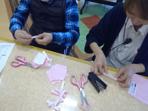普段はあまり折り紙をされないご利用者さまも、スタッフと一緒に楽しみながら制作に参加してくださいました。