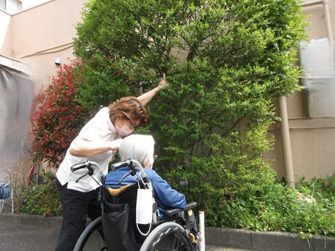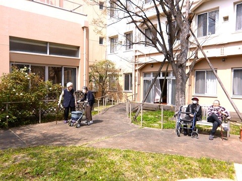 スタッフより「裏の木に鳥が巣を作っている」と話題になったり、ご入居者さまから「中庭の木が満開よ」「何の花かしら?」と会話が弾み交流の場になっています。皆さま春の陽気に気分も晴れやかです。ローズライフくずはでは、敷地内に中庭や駐車場などお散歩できる場所も多くあり、色々な楽しみを見つけていただけます。